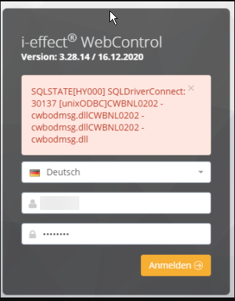 Beim Anmelden in WebControl erscheint eine Fehlermeldung
