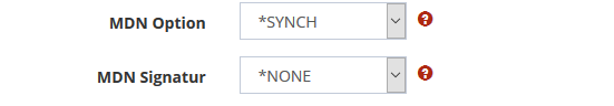 | MDN Signatur | Der Parameter MDN Signatur gibt an, welchen Algorithmus der Empfänger der AS2-Nachricht benutzen muss, um die MDN zu signieren. Dabei gilt allerdings, wenn die versendete AS2-Nachricht mit dem Algorithmus SHA1 signiert ist, wird der Empfänger automatisch dazu gezwungen die MDN auch mit dem Algorithmus SHA1 zu signieren. Die Auswahl *MD5 in diesem Parameter wird in diesem Fall ignoriert. Nur wenn Sie eine AS2-Nachricht unsigniert versenden, greift die Auswahl dieses Parameters. |