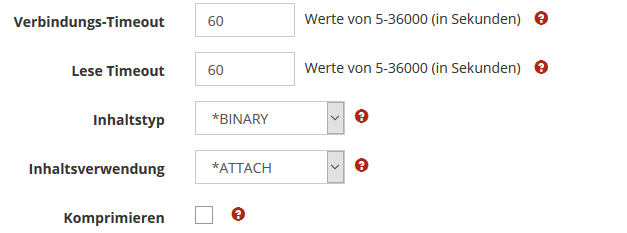 | Inhaltstyp | Hier können Sie die Art des Inhalts der AS2 Nachricht festlegen, z.B. *BINARY, *EDIFACT, *XML, *X12, *X12, *FRMFILE oder *CONSTENT. |