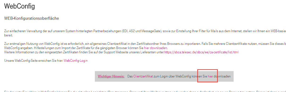 Das Zertifikat steht auf der Seite http://service-viat.de/?WebConfig zum Download Verfügung.
