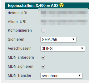 Die Default Einstellungen in den Eigenschaftten X.400 → AS2 können unverändert übernommen werden.