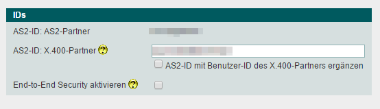 Die Option AS2 ID mit Benutzer ID des X.400 Partners ergänzen darf NICHT aktiviert werden