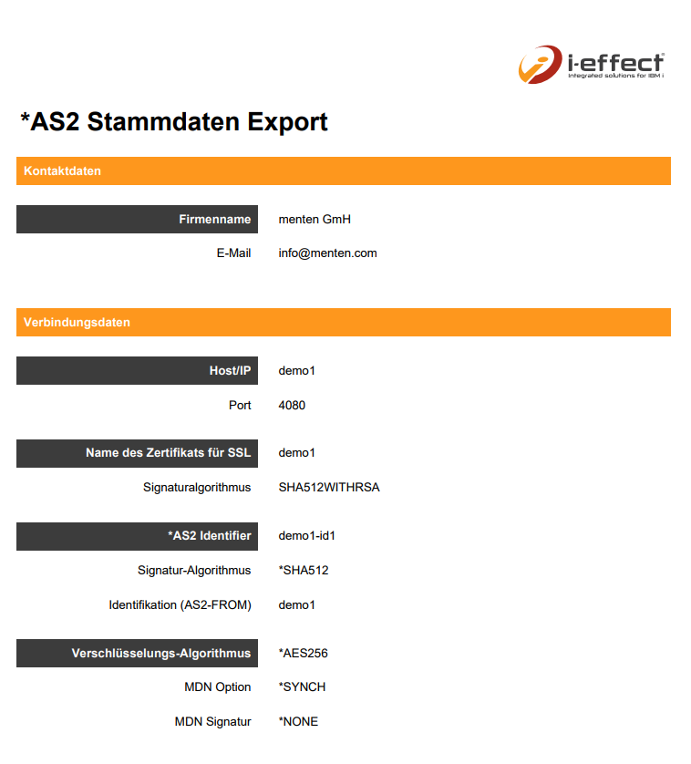 AS2-Verbindungsdaten und Zertifikat exportieren