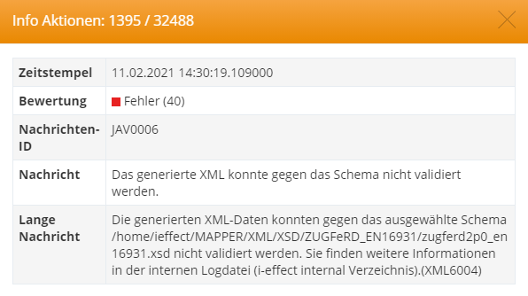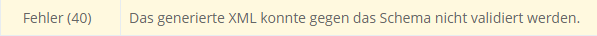 Sollte die erstellte XML nicht validiert werden können, befindet sich folgende Meldung im Logbuch: