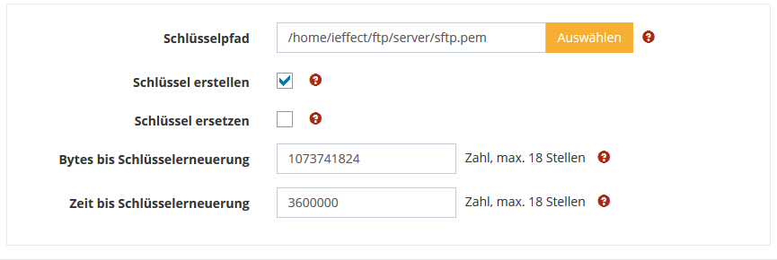 - Schlüsselpfad: /home/ieffect/ftp/server/sftp.pem