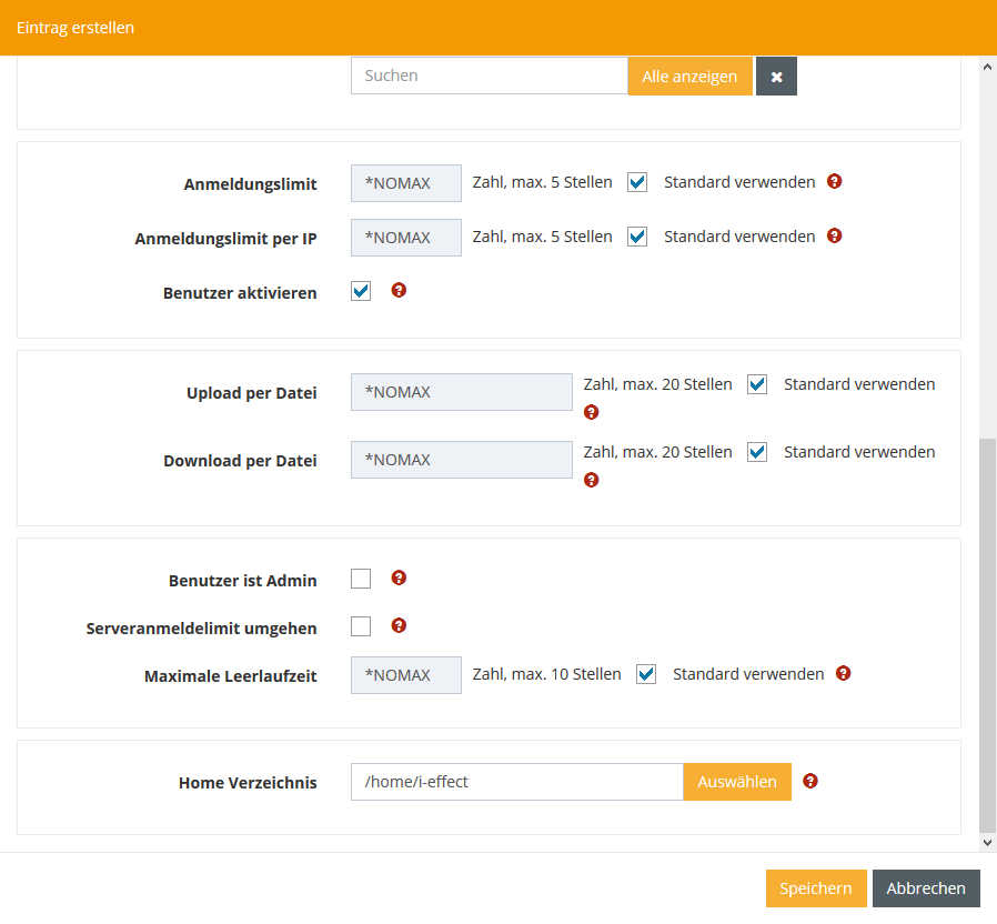Füllen Sie die Masken mit Ihren Angaben aus und drücken Sie anschließend auf Speichern.