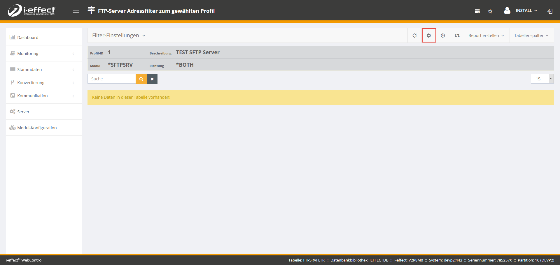 Um einen Adressfilter zu einem *SFTP-Server-Profil hinzuzufügen beachten Sie folgende Schritte: