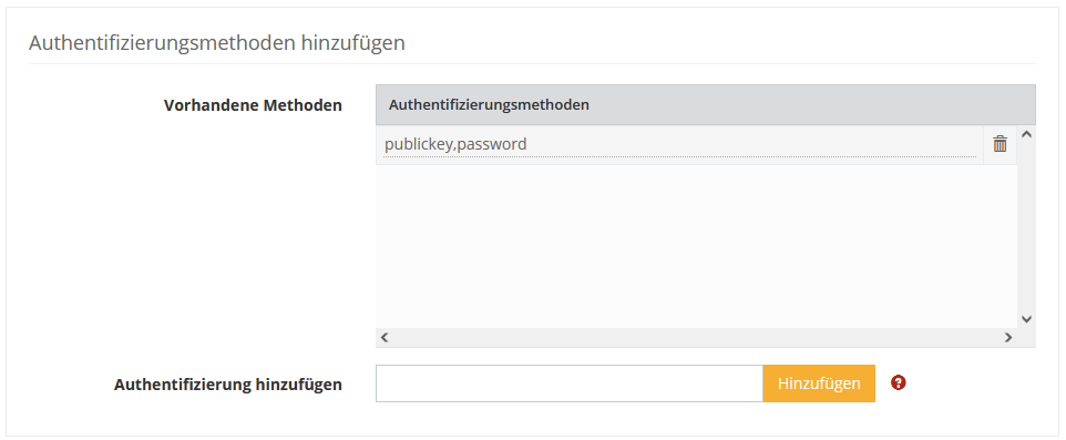 Authentifizierungsmethoden zu einem *SFTP Server Profil können Sie im Formular hinzuzufügen: