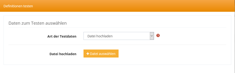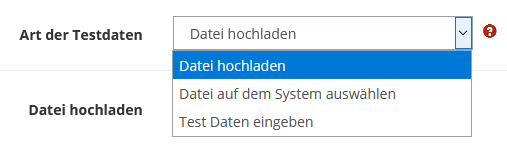 Testdaten können entweder als Datei hochgeladen werden, auf dem Sytem ausgewählt werden, oder aber per Copy and Paste in ein Textfeld kopiert werden.