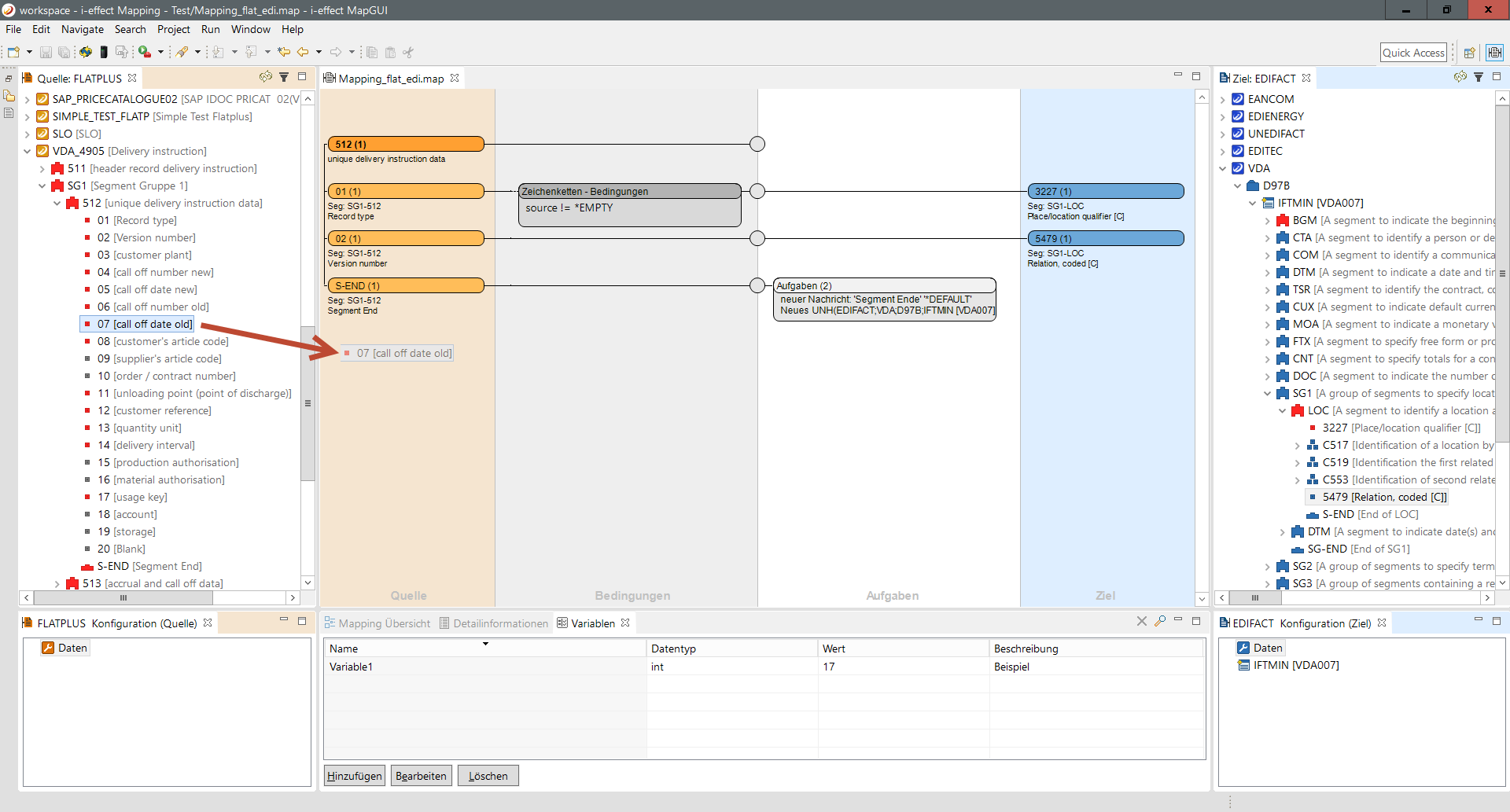 Ziehen Sie ein Feld in den Quellbereich des Mapping-Editors: