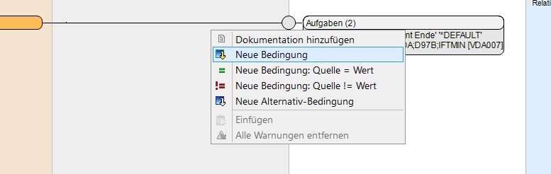 Mit einem Rechtsklick in dem Bereich öffnet sich ein Kontextmenü und ermöglicht das Hinzufügen von Bedingungen zu dem entsprechenden Mapping.