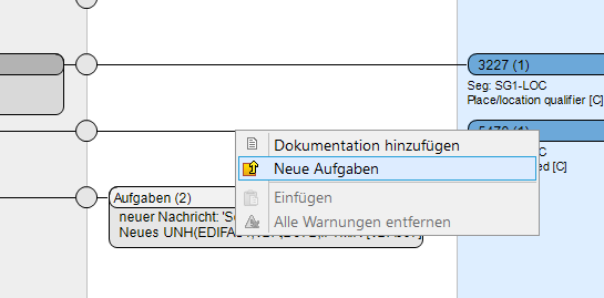 In dem dritten Bereich kann eine Liste von Aufgaben definiert werden, die auf einen zu mappenden Wert (und anderes) angewendet werden. Das erstellen einer Aufgabe kann mit einem Rechtsklick auf den Bereich durchgeführt werden: