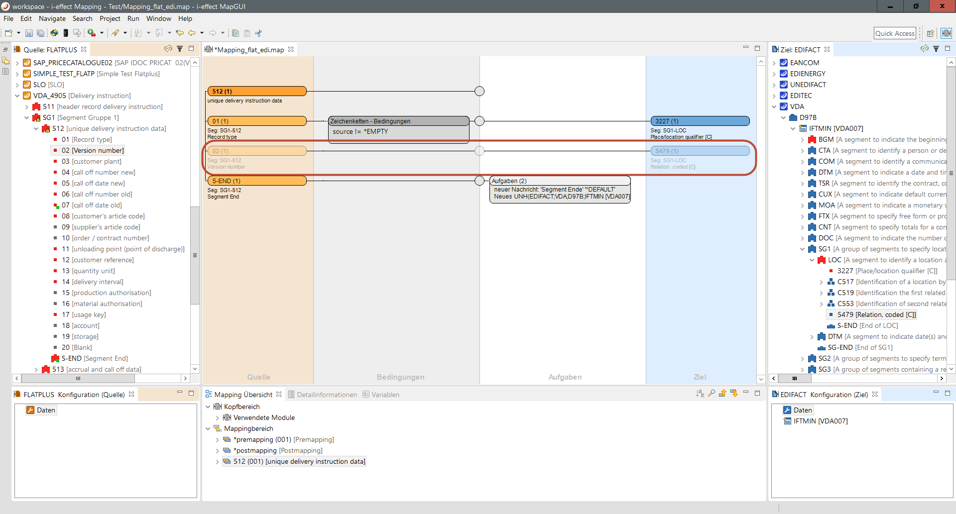 Der Mapping-Editor teilt sich in verschiedene Bereiche auf, die im Folgenden erläutert werden.