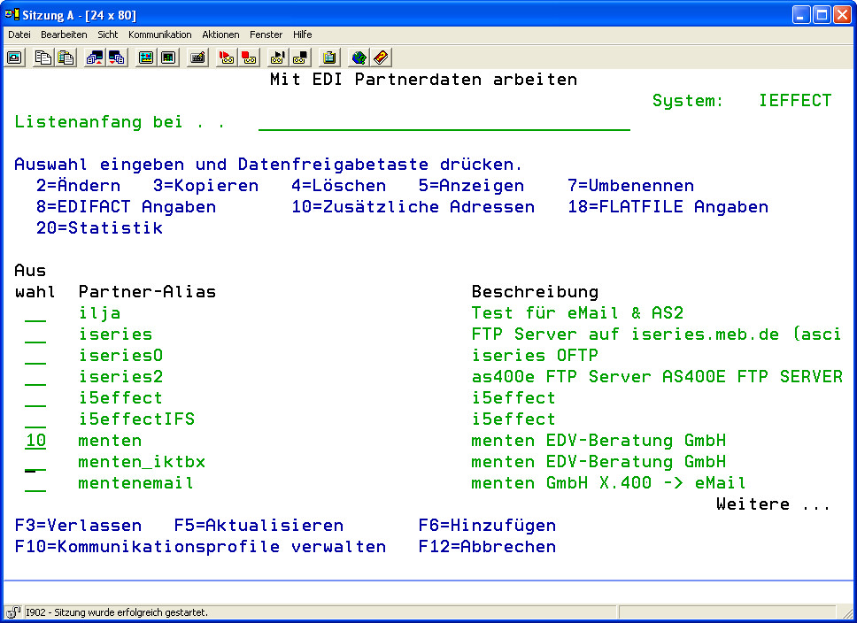 In das Menü zum Anlegen der Adressen gelangen Sie über Menüpunkt 50und dann mit Auswahl 10 „Zusätzliche Adressen" vor den gewünschten Eintrag.