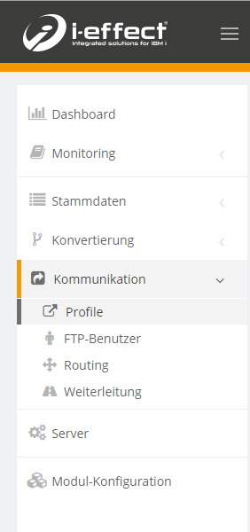 Um ein neues E-Mail-Profil anzulegen gehen Sie bitte auf den Reiter Kommunikation → Profile.