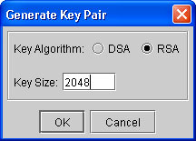 - Um in einem Keystore ein Schlüsselpaar anzulegen verwenden Sie bitteTools -> Generate Key Pair... Strg + G)Folgendes Dialogfenster öffnet sich:
