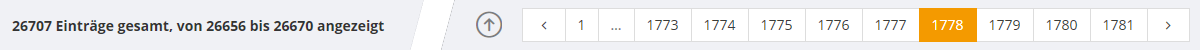 Am unteren Ende der Tabelle liegt eine Fußzeile die die Informationen aus der Info-Zeile zu den vorhandenen und ausgewählten Datensätzen wiederholt. Zusätzlich befindet sich hier eine Sprungmarke zum Seitenanfang und die Navigationelemente zu den weiteren Seiten mit Daten.