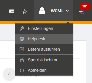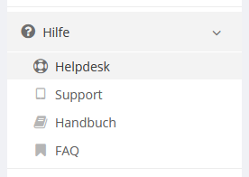 Aufgerufen wird das Helpdesk über das Menü oben rechts oder über den Bereich Hilfe in der Navigation links.