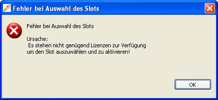 Sollten Sie nicht über die notwendige Anzahl an Lizenzen verfügen, um die gewünschte Anzahl an Slots auswählen zu können, erscheint die folgende Fehlermeldung: