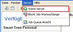 Starten des Servers über das Menü Server->Starte Server