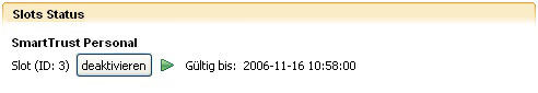 Die Aktivierung eines Slots und somit das Erzeugen einer aktiven Sitzung für Signatur-Operationen erfolgt durch einen Maus-klick auf „aktivieren".