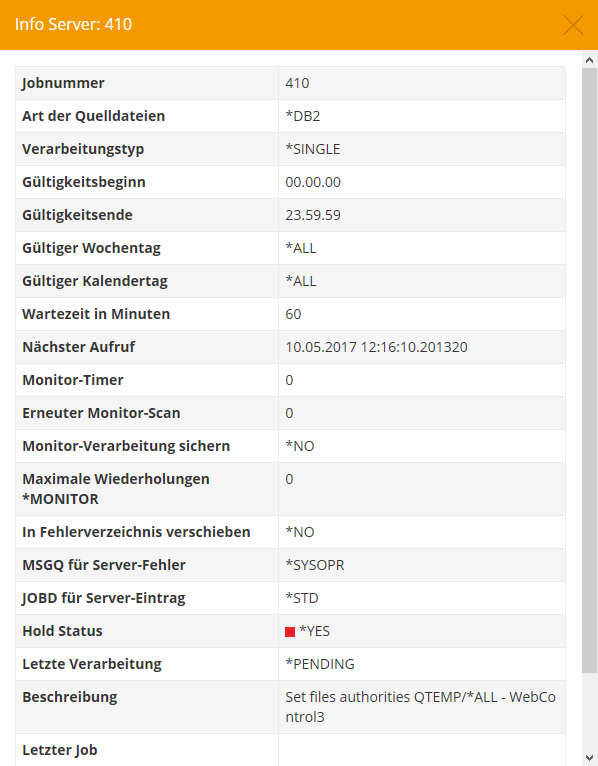 Es öffnet sich ein Popup in dem alle vorhanden Informationen als Liste angezeigt werden. Bei sehr umfangreichen Einträgen kann diese Ansicht gescrollt werden. Es werden dabei immer alle zum Datensatz vorhandenen Felder angezeigt, auch wenn diese in der Tabellenansicht ausgeblendet oder nicht verfügbar sind.