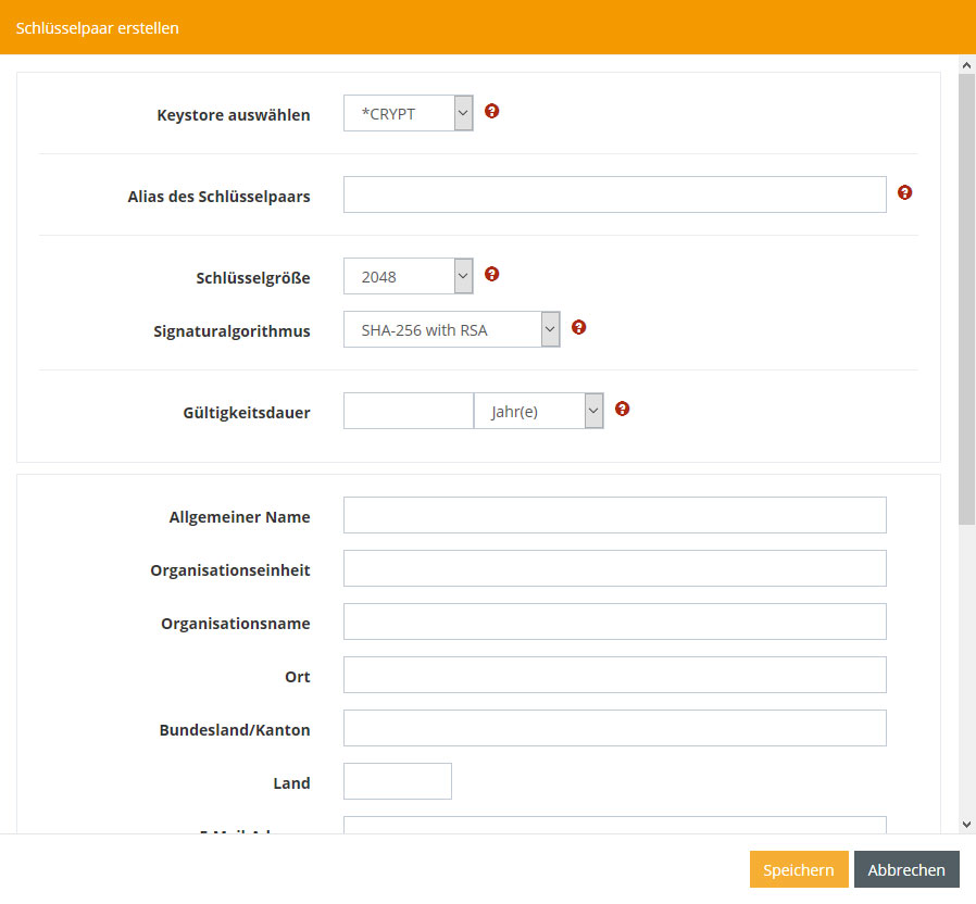 In der Menüleiste kann zwischen den verschiedenen Keystore Modulen gewechselt werden:
