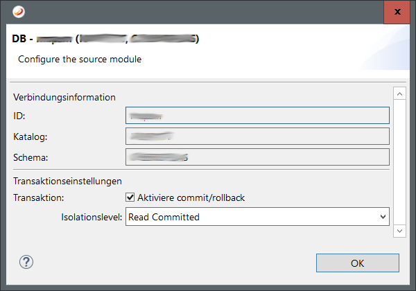 Darüber hinaus kann der Transaktionslevel eingestellt werden, mit dem auf die Daten zugegriffen wird bzw. geschrieben werden.