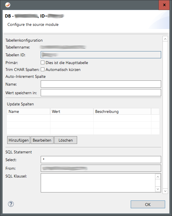 Bei der Verwendung des DB-Moduls benötigen Sie an gewissen Punkten in Ihrem Mapping eine erweiterte Konfiguration der zu selektierenden Daten. Das einfachste Beispiel ist die Abfrage nach bisher nicht verarbeitenden Daten. Bei den meisten Mappings, die das DB-Modul als Quelle verwenden wird so eine Statusspalte in ein Select eingebaut. Um das DB-Modul zu konfigurieren gehen Sie wie folgt vor: