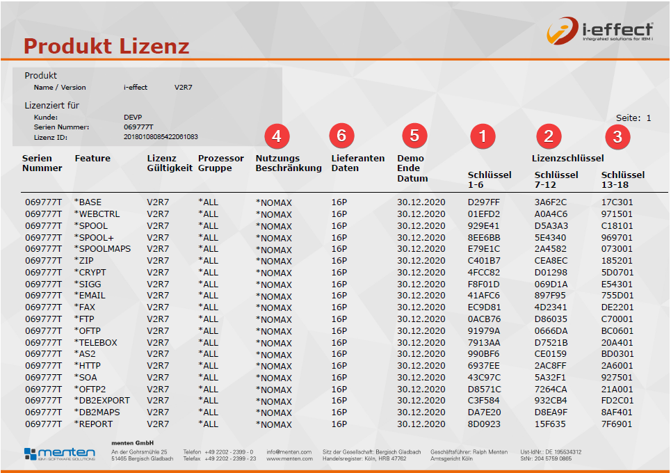 Alle hierfür notwendigen Daten können Sie dem Lizenzbericht entnehmen, den Sie von Ihrem Softwareanbieter erhalten haben.