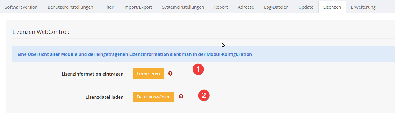 Wählen Sie im folgenden Dialog den Speicherort dieser Datei und das System wird die in der Datei befindlichen Lizenzdaten automatisch einlesen.