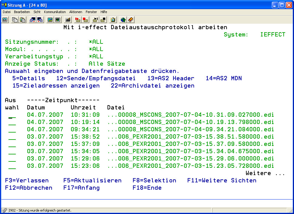 Durch Drücken von F15 haben Sie die Möglichkeit, sich die versendeten bzw. empfangenen Dateien anzeigen zu lassen.