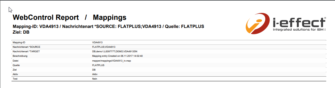 Erzeugt einen PDF Bericht, in dem alle wesentlichen Parameter des Mappings enthalten sind.