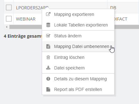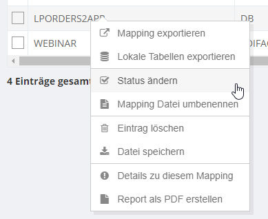 Der Status eines Mappings kann mit Hilfe dieser Funktion aus dem Kontextmenu angepasst werden.