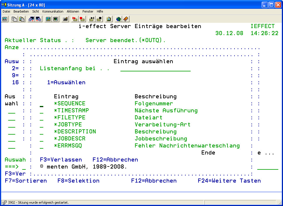 Menü Punkt 40: Mit *SERVER arbeiten (WRKEFFSRV)