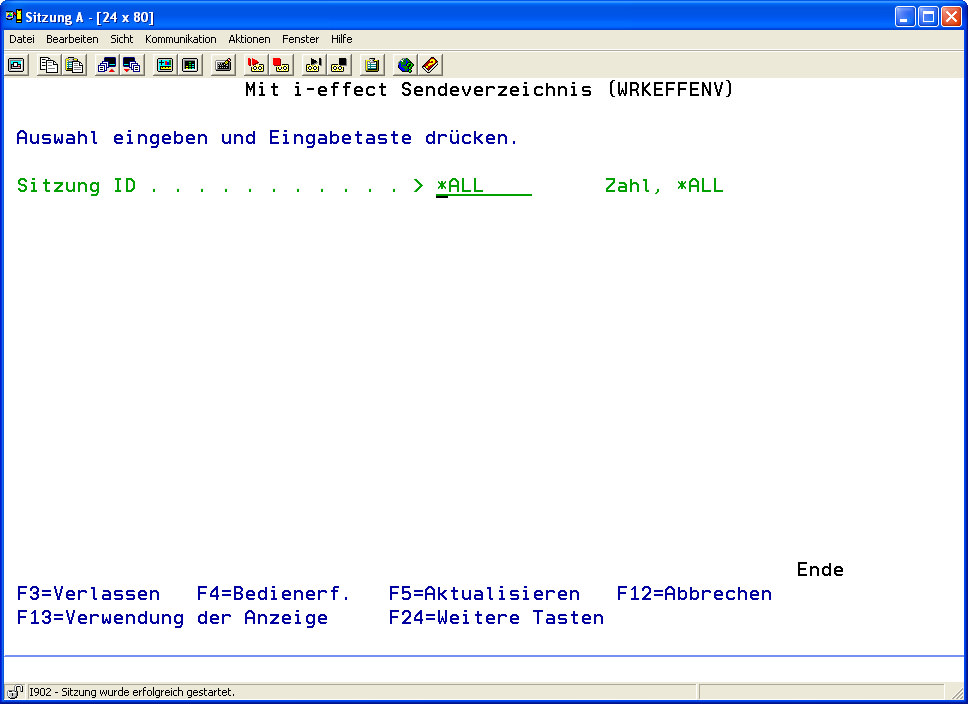 Menuepunkt 1: Mit Sendeverzeichnis arbeiten WRKEFFENV