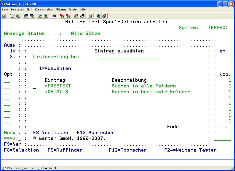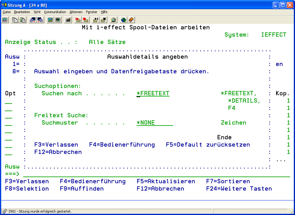 Rufen Sie mit Funktionstaste F8 die Suchfunktion nach Spooldateien auf.