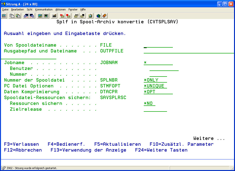 Der „Splf in Spool-Archiv konvertieren" (CVTSPLSAV)-Befehl konvertiert Spooldateien in Datenstromdateien in i-effect®s proprietärem komprimiertem Spoolddateiarchivformat.