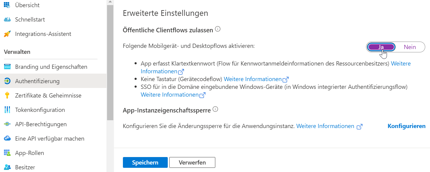 -„Öffentlichen Clientflows zulassen“ auf ja setzen.