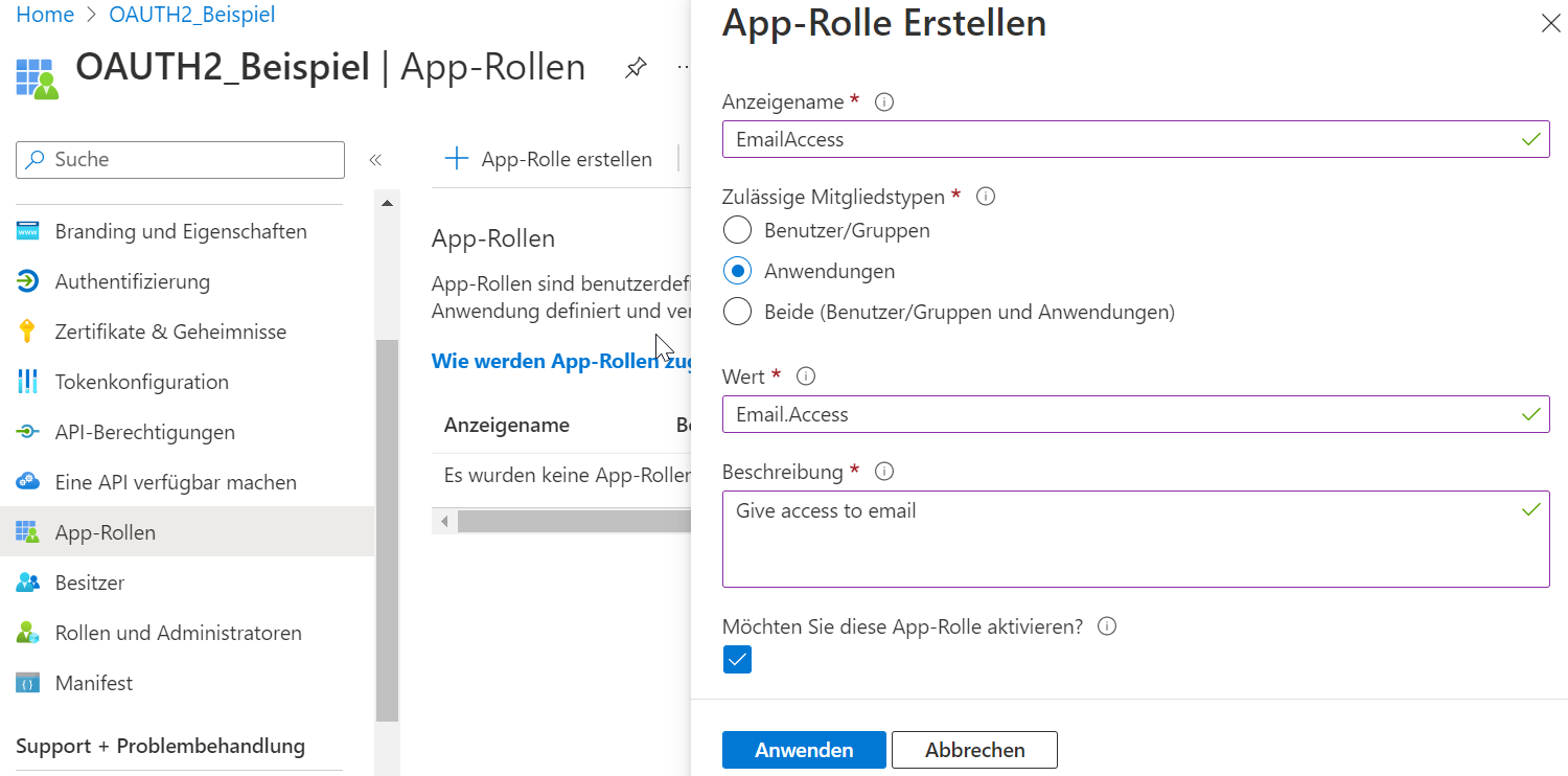 Eine neue App können Sie im Azure Active Directory unter „App-Registrierung“ unter „+ Neue Registrierung“ erstellen.