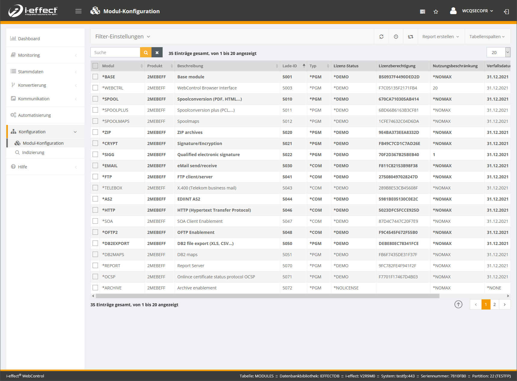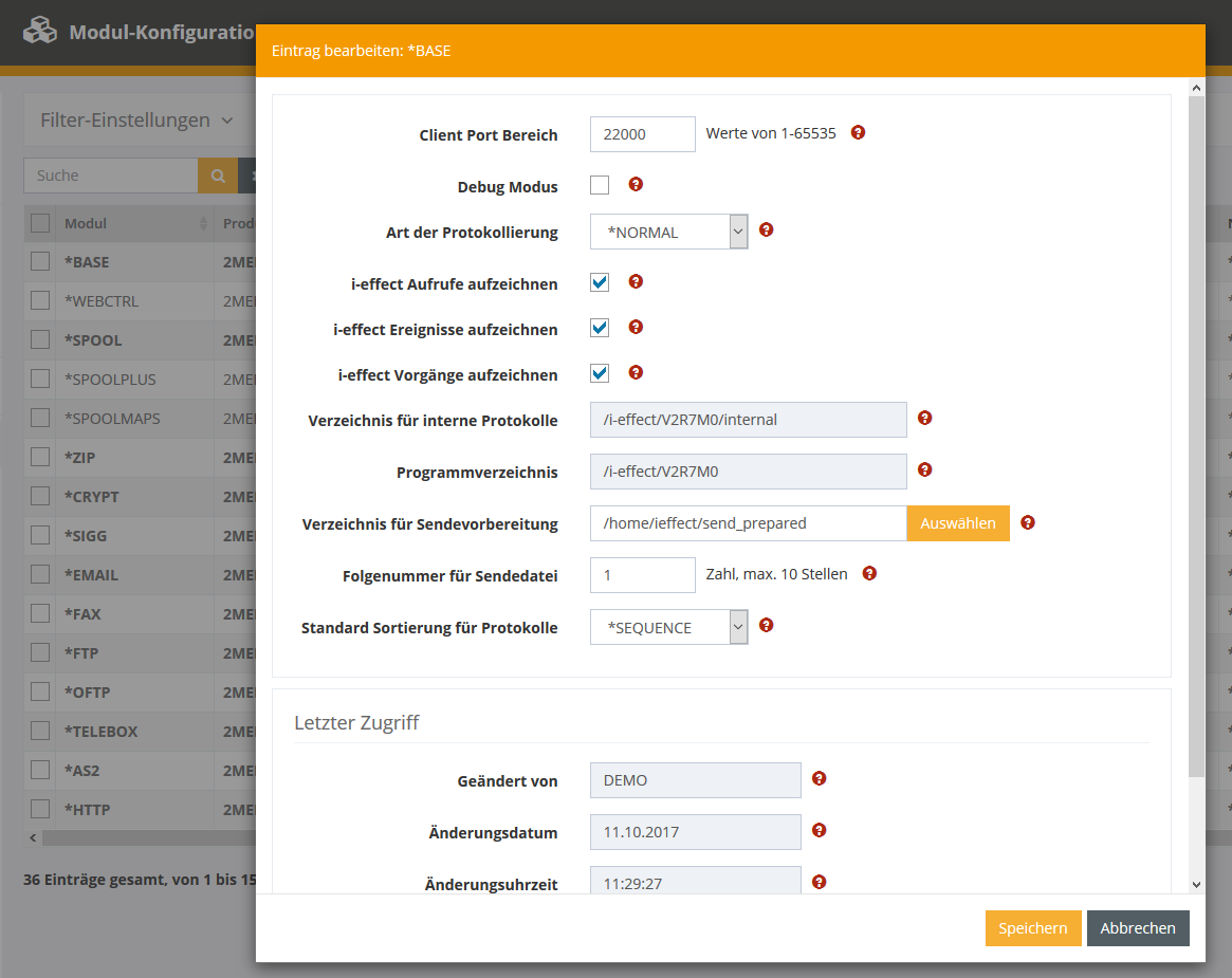 An dieser Stelle werden zentral die Modulstammdaten der i-effect Module verwaltet.