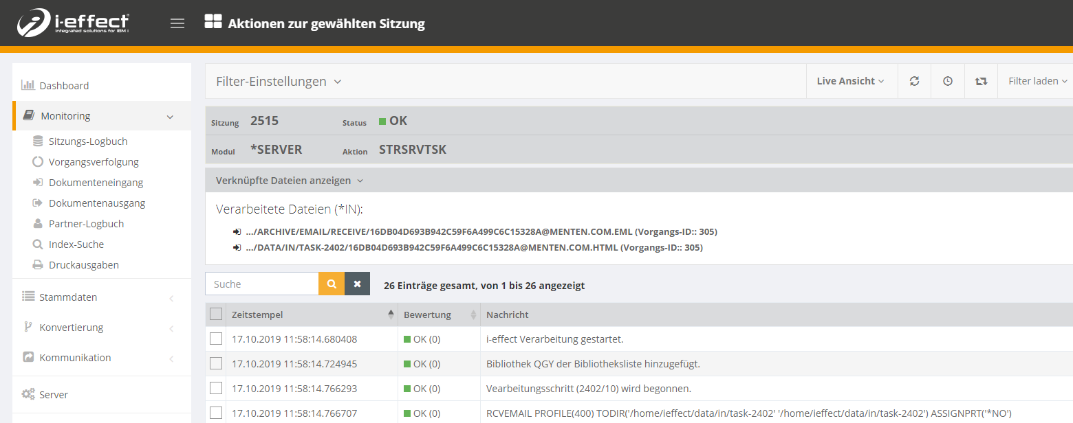 Monitoring des E-Mail Ein- und Ausgangs in i-effect