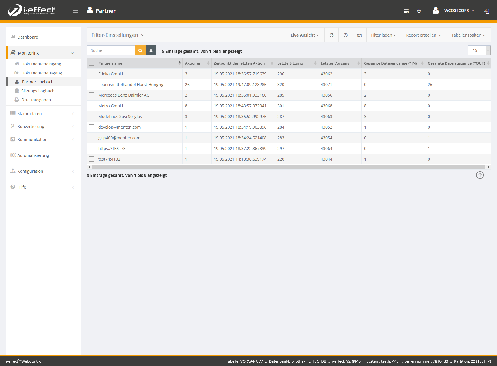 Die Rubrik Partner-Logbuch zeigt die die vorhandenen Partnereinträge.