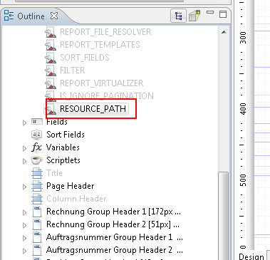 Damit Sie Ihre Reports auch in der Vorschau von iReport anzeigen können, muss der RESOURCE_PATH Parameter eine korrekte DefaultValueExpression besitzen.