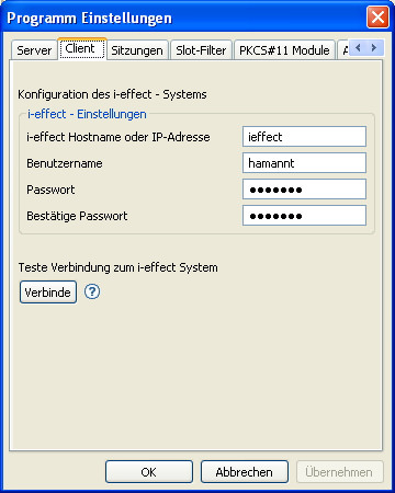 Es können die folgenden Einstellungen für den Zugriff auf i-effect vorgenommen werden: