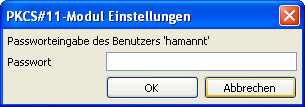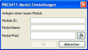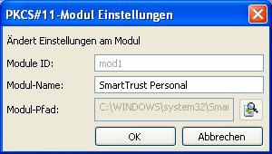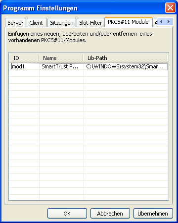 Der Reiter „PKCS#11 Module" dient dem Verwalten von PKCS#11-Bibliotheken, mit dessen Hilfe ein Zugriff auf die Kartenlesegeräte und somit auf die eingesteckten SmartCards ermöglicht wird.