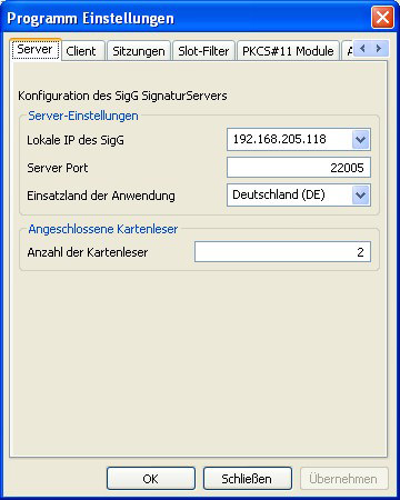 Darüber hinaus besteht natürlich auch die Möglichkeit bei der Nutzung mehrerer Kartenlesegeräte individuelle Einstellung der Gültigkeit einer Signatursitzung je Slot vorzunehmen.