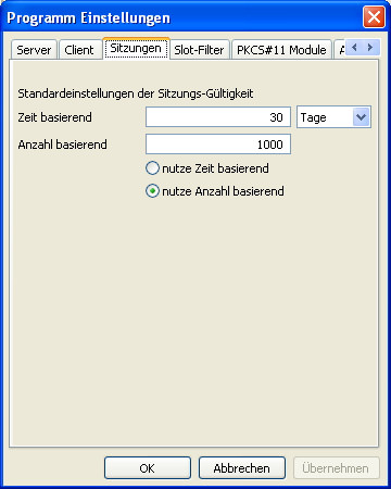 | Benutze Anzahl basierend | Die Gültigkeit einer Signatur-Sitzung bestimmt sich aus der angegebenen Anzahl durchzuführender Signaturen. |