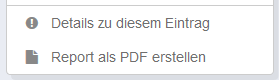 Zweitens über das Kontext-Menü. Dort kann ein PDF-Report ebenfalls zu einem bestimmten Datensatz erstellt werden.
