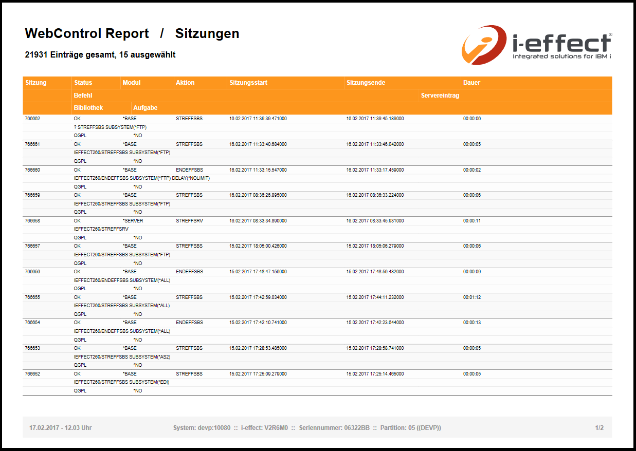 Bei einem WebControl-Report handelt es sich um eine als PDF oder Excel exportierte Zusammenfassung von mehreren Datensätzen, oder den Detailinformationen zu einem bestimmten Datensatz. Diese Funktion steht auf allen Seiten mit Tabellenansicht zur Verfügung.